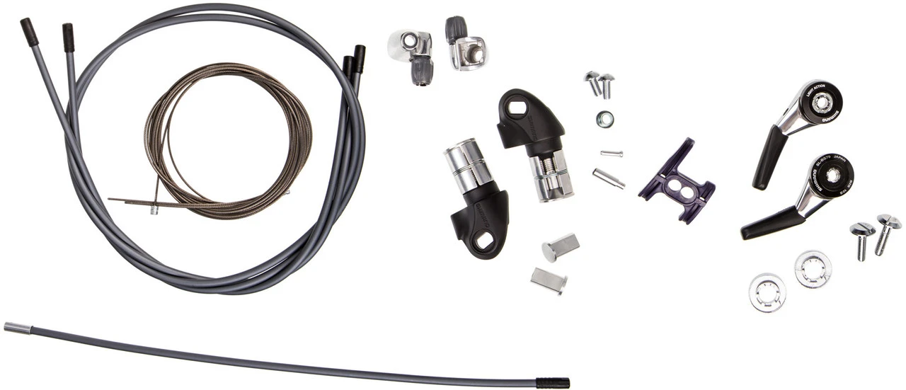 Contenu :1 paire de leviers de vitesses Shimano Dura-Ace SL-BS791 pair d’appuis pour cadre Shimano SM-CS501 x câble Shimano 2600 mm1 x câble Shimano 2000 mm2 x gaines de câble Shimano SP41 800 mm1 x gaine de câble Shimano SP41 (scellée) 300 mm